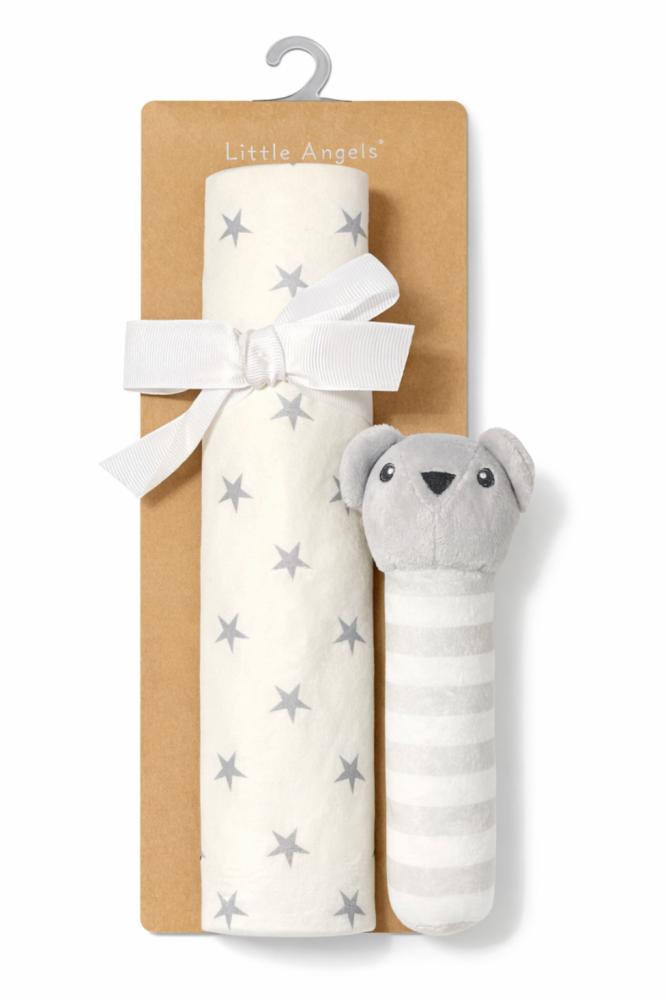 طقم لفة مواليد مع خشخيشة قماشية هو الخيار المثالي لكل أم ترغب في راحة طفلها وأناقة إطلالته منذ اليوم الأول.